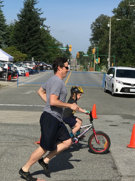 The four year olds needed an escort during their race. Paige is a faster bike rider than I am runner.